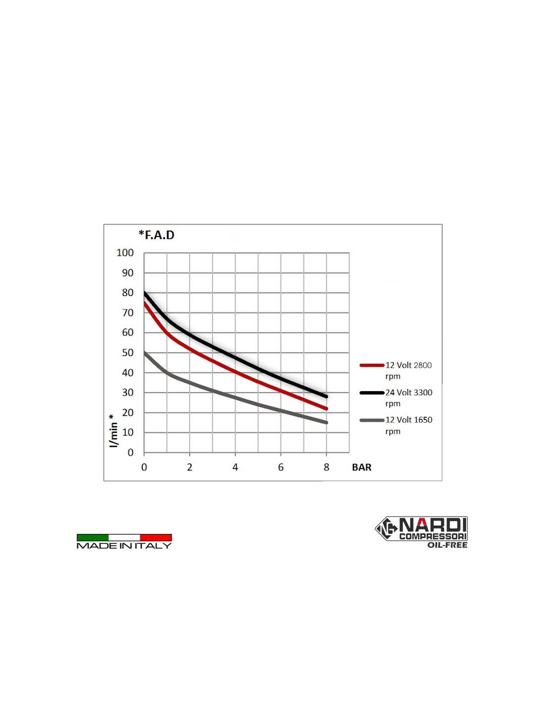 Nardi Sioverstone 2, kompresor 24V/12V, motor prisilno hlajen 350W – 3300rpm, pretok zraka120L/min, delovni tlak max 8 bar-nastavljiv, hrup 74dB, 2 manometra, rezervoar 5L, priključni kabli dolžine 2m z ščipalkami.
