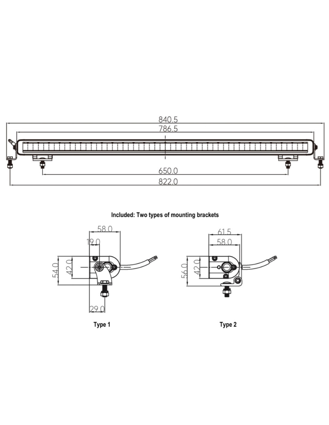 Daljinski LED žaromet – light bar s pozicijo serije eXite ima dimenzije 787x42x58mm ter nazivno moč 135W. Deluje na električni napetosti od 10 do 32V. Daljinko sestavlja sedemindvajset 5W LED diod s skupno svetilnostjo 10125 Lumnov. Daljinka – Light bar Daljinka – Light bar ima dizajn “brez okvirja” ter odbojno parabolo za bolje usmerjen svetlobni snop ter homologirano sprednjo pozicijsko svetilko v beli ali oranžni barvi. Daljinka ima dvojno ECE homologacijo, ki dovoljuje montažo v paru ali en sredinsko montiran en light bar.